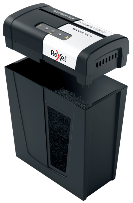Rexel's range of Secure paper shredders are ideal for destroying your personal documents and sensitive information at home. The Secure MC4 shredder machine shreds up to 4 sheets of A4 paper (80gsm) in one go through the manual feed slot into P-5 (2x15mm) micro cut pieces. This micro cut shredder is perfect for use as a home shredder or in a home office due to its compact and slim design. It is also an ideal personal office shredder that fits conveniently under a desk and operates with Whisper-Shred™ low noise. Designed for light to moderate use with a 14L bin capacity for less frequent emptying.